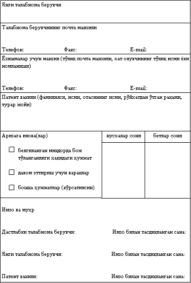 <title>&nbsp;1988-сон 29.07.2009.&nbsp;Товар белгиси ва хизмат кўрсатиш белгисини рўйхатдан ўтказиш учун талабнома тузиш, топшириш ва кўриб чиқиш қоидаларини тасдиқлаш тўғрисида</title>