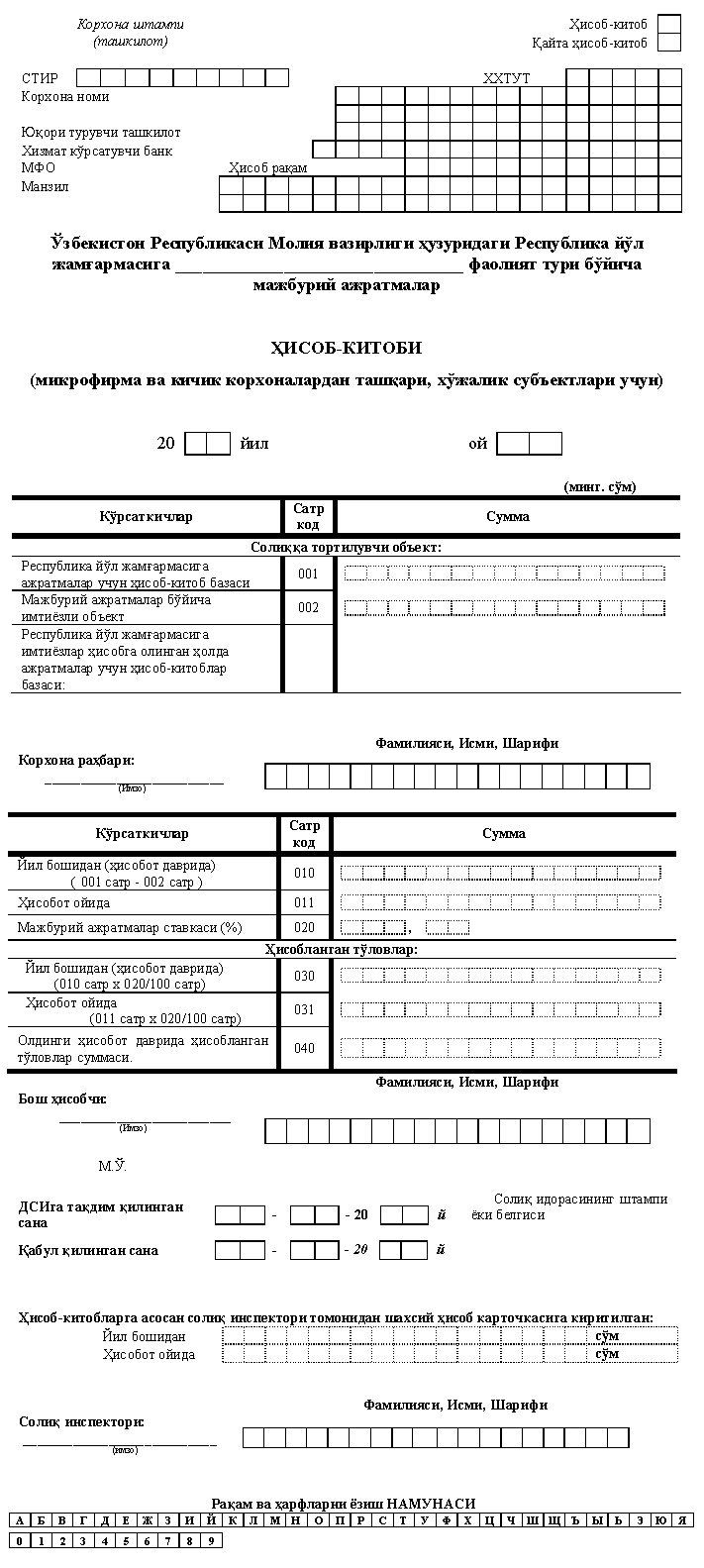 <title>&nbsp;1676-сон 02.05.2007.&nbsp;Ўзбекистон Республикаси Молия вазирлиги ҳузуридаги Республика йўл жамғармасига мажбурий ажратмалар бўйича ҳисоб-китоб шакли ва уни тўлдириш ҳамда тақдим этиш бўйича қоидаларни тасдиқлаш тўғрисида</title>